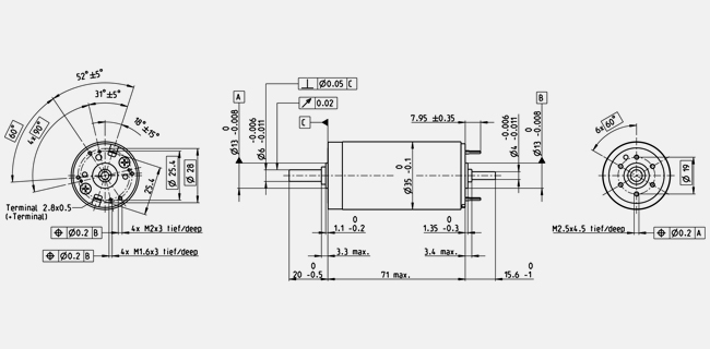 | Max. radial load | 28 N, 5 mm from flange |