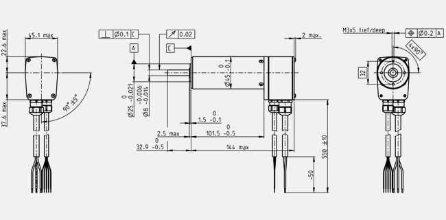 | Max. radial load | 180 N, 5 mm from flange |