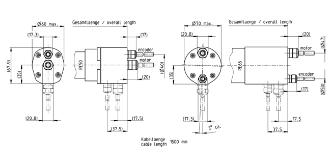 High precision encoders, DC tachometers and resolvers with a high signal resolution are mounted exclusively on motors with through shafts for resonance reasons. The assembly requires adjustment to the motors and may only be done in the delivery plant.